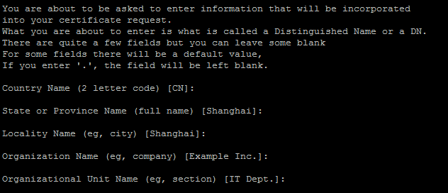 3、SSL证书信息直接回车就行,不用太认真